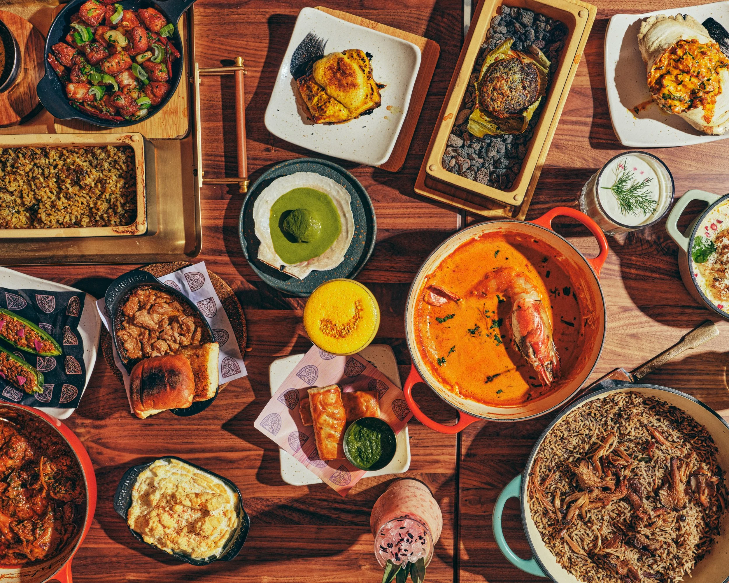 Custom menu curation by Chef Neel Kajale, including passed canapés, 10-dish family style menu with premium menu upgrades